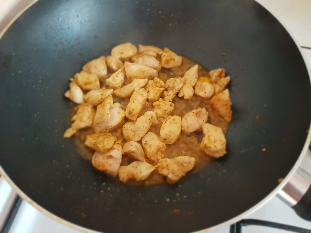 Se topește untul și se pune pieptul în tigaie după care se adaugă condimentele după preferință, sare, piper, boia(care poate fi înlocuită cu un praf de chili pentru un gust picant), usturoi și oregano.